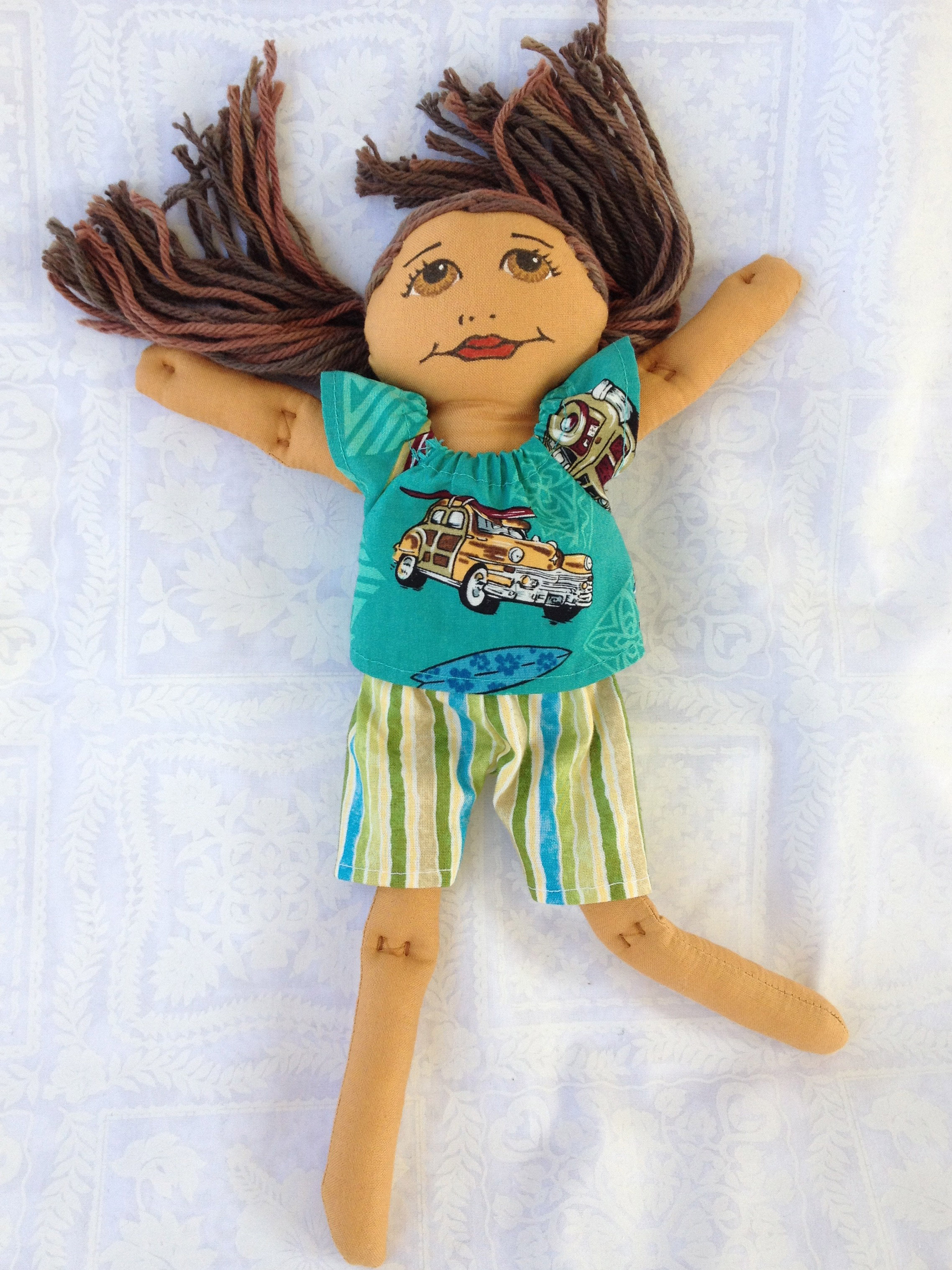 striped shorts with teal top